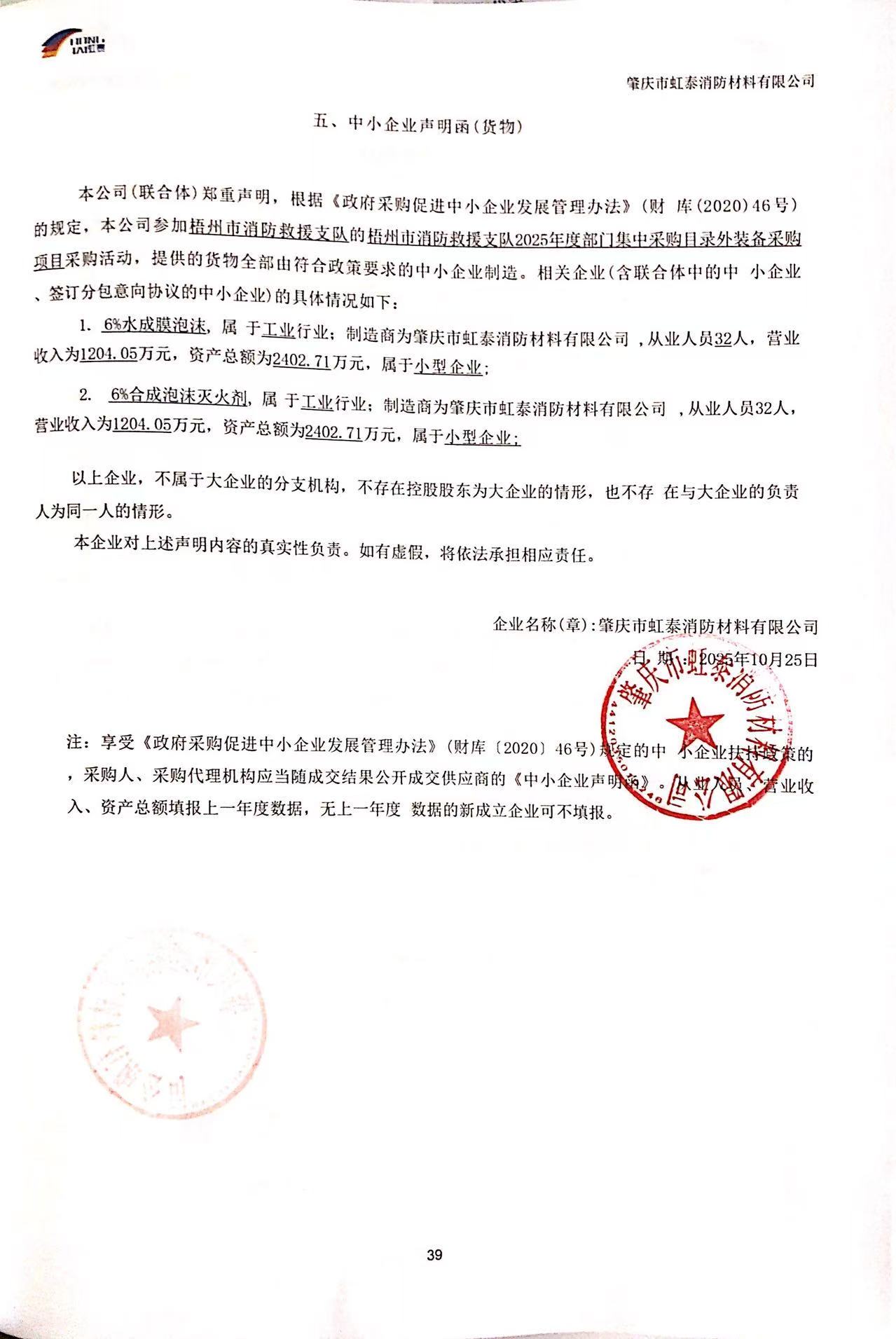 供应商名称:肇庆市虹泰消防材料有限公司
